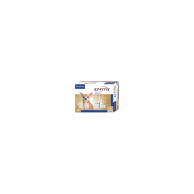 Effitix es un antiparasitario externo para perros que se aplica mediante pipetas muy fáciles de usar que marcan la diferencia, porque mientras otras pipetas actúan durante 3 semanas, EFFITIX ofrece cuatro semanas de protección frente a los principales parásitos.