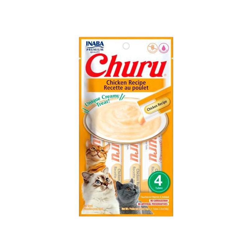 SNACKS de pollo naturales suaves en forma de tubitos en crema sazonados con sabores naturales, extracto de té verde y vitamina E.